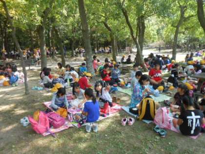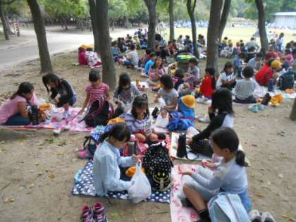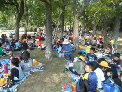 植物園の芝生広場で、みんな仲良くお弁当を食べました。好天のもとで、美味しいお弁当を嬉しそうにほうばっていました。
