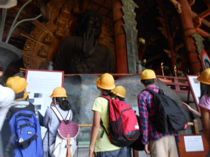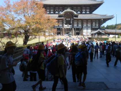 まずは、東大寺の大仏殿を訪れました。世界文化遺産登録されて、多くの観光客でいっぱいでした。