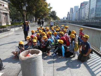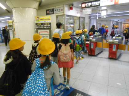 4年生が、大阪市立科学館へ社会見学に行きました。地下鉄で瑞光4丁目から東梅田まで行き、梅田の地下街を通って御堂筋線で淀屋橋まで乗り継いで行きました。淀屋橋から科学館までは、中之島の遊歩道を班行動で歩きました。