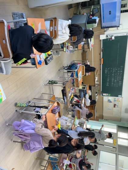 実習教材を使って、回路の仕組みについて学ぶための準備をしています。導線に巻き付いているビニルのカバーを爪で上手に剥がすのに苦労していました。早くできた子が、困っている子を助けてあげる姿が見られました。優しい気持ちに、心が温かくなりました。
