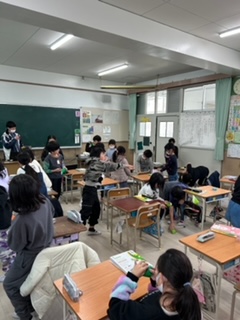 5時間目の理科で、折り紙を使い、わっかひこうきを作りました。