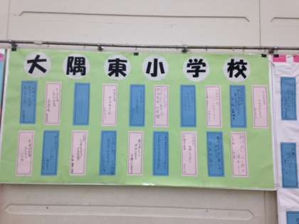 昨日3日(火)東淀川区役所で、第31回「区民のつどい」がありました。他校の作品に並んで掲示され、本校児童の「人権標語」を来場者の方に見ていただきました。