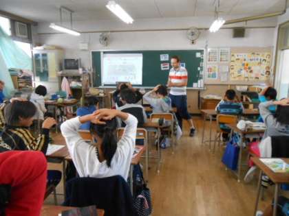 6年生が、アンディ先生の英語発音を聞き取りながら、様々な国名を英語で発音し、その国の有名なものを〜にあてはめて、「 I Want to go 〜.」「 I Want to see 〜.」「 I Want to eat 〜.」についてゲームを交えて学習しました。