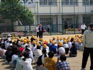 1時間目に、家庭科室からの出火を想定しての避難訓練を行いました。「おさない、走らない、しゃべらない、もどらない」を意識して、訓練にのぞみました。みな、迅速に行動にうつすことができました。