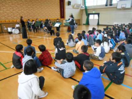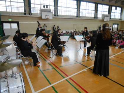 指揮者体験コーナーでは、6年生二人が、チャレンジしました。そのあと、全校児童が、オーケストラと一緒に「ビリーブ」を合唱しました。