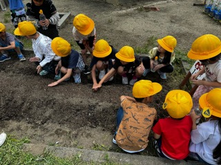 生活科の学習で、ひまわりの種を植えました。みんなで草むしりから頑張りました。これから心をこめて、大切に育てていきます。きれいな花が咲くのが楽しみです。