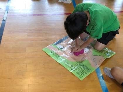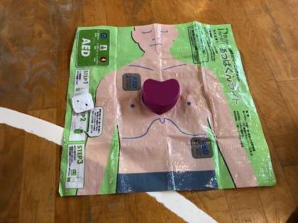 5時間目、東淀川消防署の方の指導で、心臓マッサージの講習を受けました。子供用のハートマークのキットを心臓に見立てて、心臓マッサージをしました。救急車が来るまでの適切な処置で、助かる命があるということを教えていただきました。