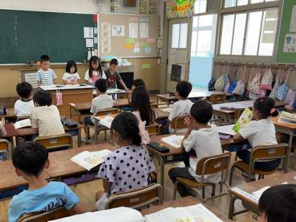 グループごとに詩の音読を行いました。グループのなかで読む部分を分担したり、ジェスチャーをつけたり、工夫をして上手に発表することができていました。また、その発表を聞く姿にも1年生の成長を感じました。