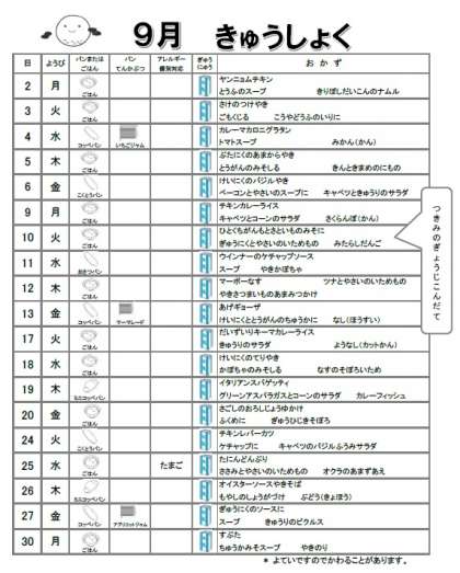 9月は、とうがんやオクラなどの夏野菜が使用できる最後の月となるとともに、秋に旬を迎えるさつまいもなどが使用できるようになり、果物のぶどうやなしも登場します。