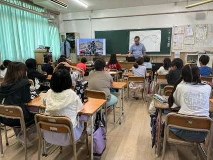 4年生に向けての平和学習です。校長より「ぼくがラーメンをたべてるとき」という絵本の読み聞かせを行ったあと、戦争や紛争によって今まさに世界各国で子どもたちが直面している状況を解説していきました。子どもたちは、真剣なまなざしで話に聞き入っていました。平和の大切さを感じてくれたものと思います。