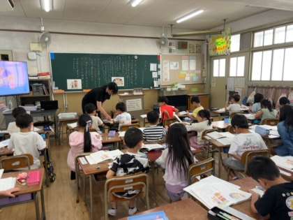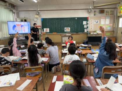 「かいがら」というお話について、登場人物の様子や気持ちを想像して読んでいきました。自分の考えを手をあげて発表する様子に、1年生のがんばりを感じます。
