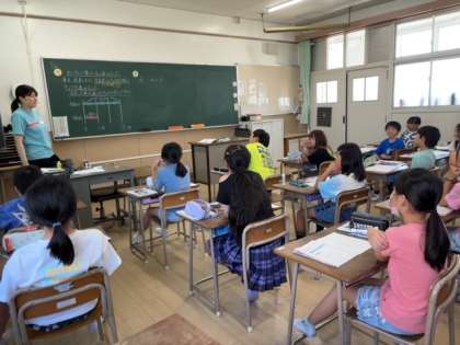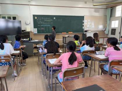 元の数字から3倍する、4倍するといった「倍の見方」を学びました。子どもたちのなかで、考えを出し合い学びあう姿が見られました。