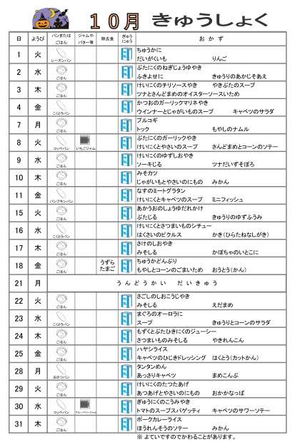 令和6年10月 きゅうしょくだより