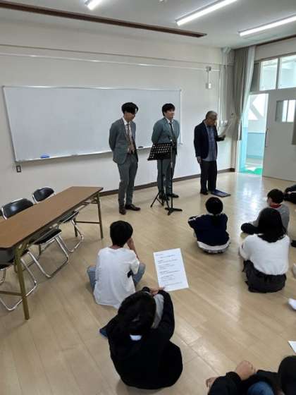 それぞれでコンビやトリオで練習して、この後、発表会を行います。少し恥ずかしい人もいますが、みんながんばろう。