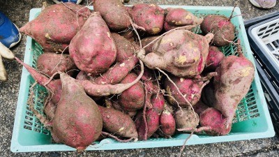 生活科の学習でずっと育てていたさつまいもの収穫を行いました。どきどきわくわくしながら掘り進めると、あちらこちらで大きく育った立派なさつまいもがいくつも掘り起こされました。毎日のように頑張ってお世話してきたさつまいもの立派な姿に子どもたちも満足した様子でした。