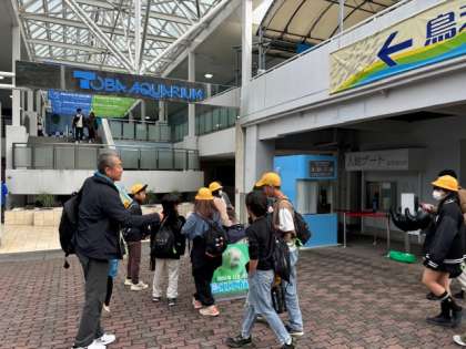 鳥羽水族館に到着しました。係りの人からの説明をうかがってから、グループごとに見学を始めます。
