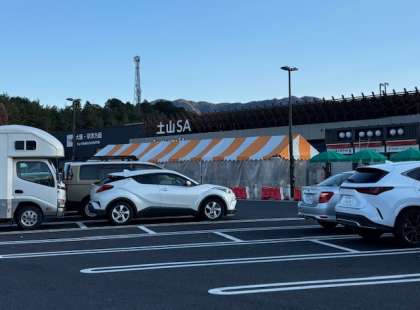 新名神高速道路の土山サービスエリアでの休憩です。あと2時間ほどで学校へ戻ります。