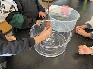 ゼリーが上にいったり下にいったりするのを楽しそうに観察していました。次はとじこめた水に挑戦です。楽しみですね。