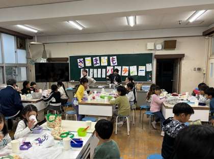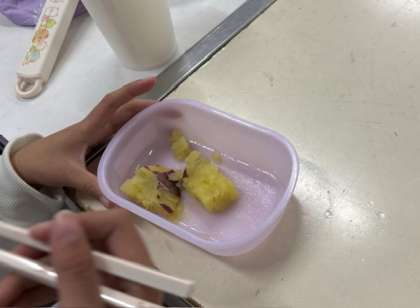 2年生が育てていたサツマイモがたくさんの実をつけました。掘り起こしたお芋を調理してみんなでおいしくいただきました。先生たちも招待してにぎやかなパーティーになりました。