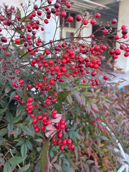 校庭の端に小さな赤い実を見つけました。この南天(ナンテン)は、難を転じる「難転(ナンテン)」という意味もあり、縁起がいいとされています。ぜひ探してみてくださいね。
