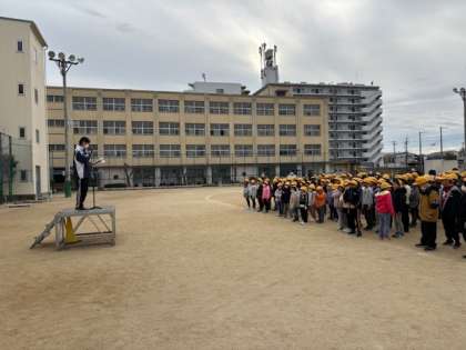 来週の2月2日は節分です。校長からは、節分に追い払う鬼は、人間の煩悩(心穏やかに過ごすことのじゃまをする自分の心)を5つの色にたとえて色分けされていること、つまりは自分自身の心に豆まきをすることを伝えました。また代表委員の児童から、今週の給食週間についての連絡を行いました。
