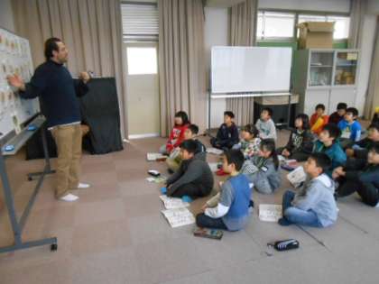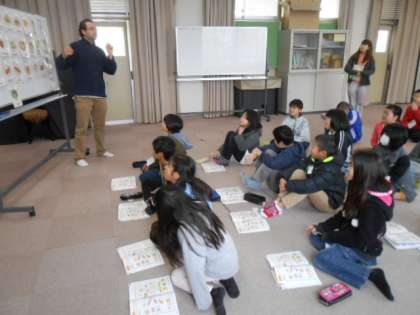 5年の外国語活動(英語)では、身近な食べ物の名前をアンディー先生のネイティブな発音に触れて、楽しく活動をしていました。