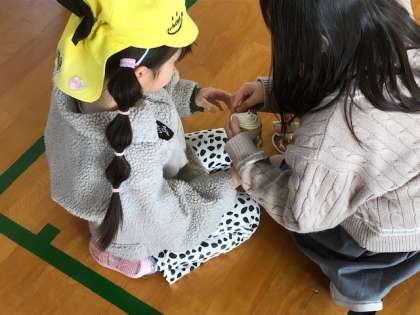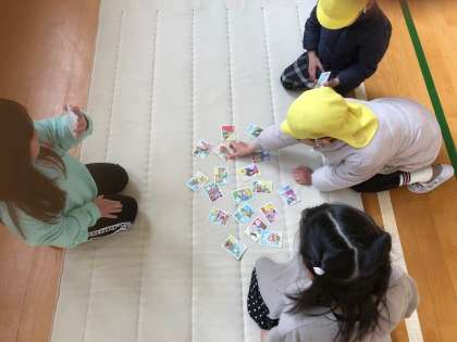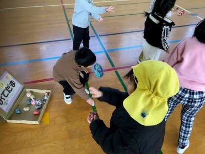 本校1年生と来年度入学する南江口保育所の園児との交流会を行いました。1年生は、生活科で学習している昔遊びを一緒にしたり教えたりしました。かるた・けん玉・羽根つき・こままわし・おてだまの5つの遊びコーナーを園児がまわりました。そのあと、1年生の教室へ行き、スイミーの読み聞かせをしました。南江口保育所の子たちから感謝のお礼を言われて、1年生はとても満足な様子でした。