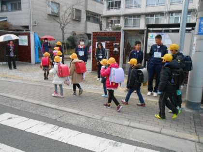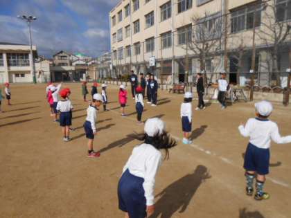 今朝は、小雪が舞い寒さが厳しくなりましたが、校門で登校する児童を元気なあいさつで迎えてもらいました。授業時間は、各学級の授業に入って、児童と触れ合いながら学校の仕事について2日間学びます。休み時間も児童たちと遊んでもらいました。