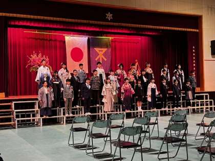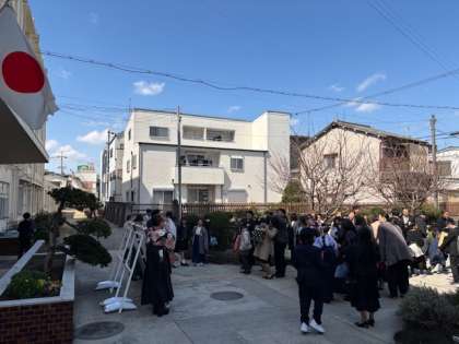 式典終了後、花道をつくって卒業生を送り出しました。中学生になってもひとりひとりの良さを存分に発揮してもらいたいと願っています。