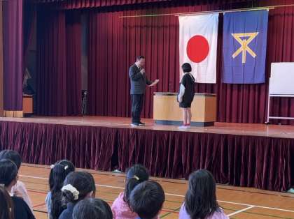 講堂にて令和6年度の修了式を行いました。まず、児童代表の5年生に修了証を授与しました。この修了証は勉強に生活に一年間よく努力したことを証明するものです。みんな本当によくがんばりました。校長講話、生活指導の先生から春休みの過ごし方についての話があった後、今年度をもって大隅東小学校をはなれる教職員を紹介しました。