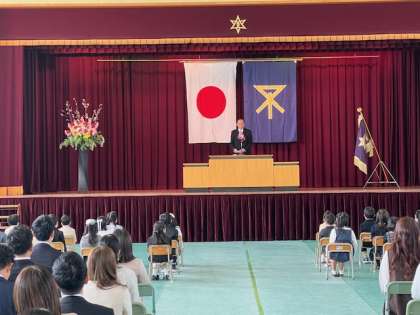 式典では、新入生は校長からの式辞、2年生からのビデオメッセージなどを静かに聞くことができました。担任の先生の紹介では、多くの子どもたちがうれしそうな表情をうかべていました。明日からも元気に学校へ来てくださいね。