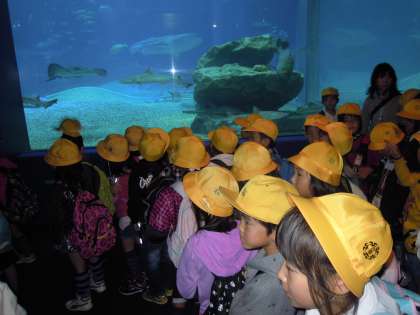 初めて見る現生最大の魚であるジンベエザメに子どもたちもびっくりしたようです。