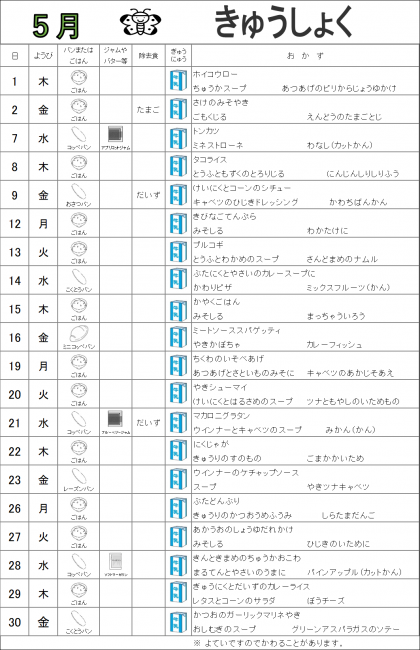 5月は、春が旬の「えんどう」「たけのこ」「かわちばんかん」が登場します。