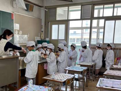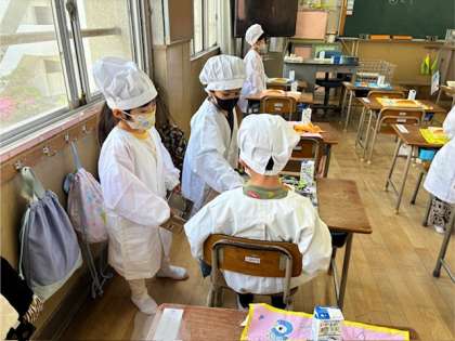 長期連休明け、子どもたちは元気に登校してくれました。1年生は給食の準備を自分たちでしっかりできるようになりました。日々の成長を感じます。みんなそろって元気に「いただきます!」。