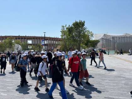 昼食後、6年生はアラブ首長国連邦(UAE)のパビリオンに立ち寄りました。外国のスタッフの方との交流も楽しんで、会場を後にしました。今日の経験や学びを今後につなげてもらいたいと願っています。