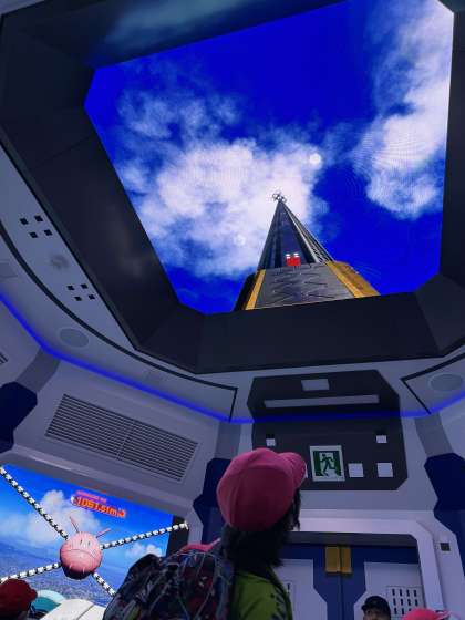 モビルスーツの活躍を見学していると、怖そうなデブリ(宇宙のゴミでできた怪物)がおそってきました!さあ、たいへん!でも、最強のモビルスーツ、ガンダムがみんなを助けてくれました。3,4年生のみんなも、ガンダムとデブリとの戦いを、食い入るように見つめていました。