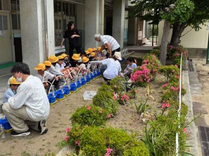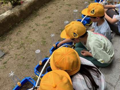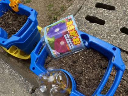 あさがおのたねを植えました。はやく芽が出るといいですね。
