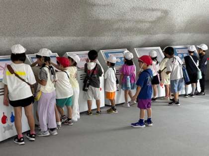 本日、1年生と2年生は校外学習として大阪・関西万博へ貸切バスを使って出かけました。西ゲートから会場に入ってすぐに「ジュニアSDG'sキャンプ」へ向かい、そこでデジタル機器を使ったクイズなどを楽しみました。