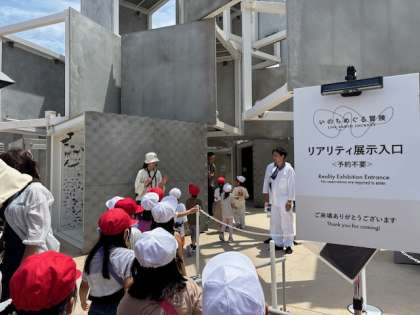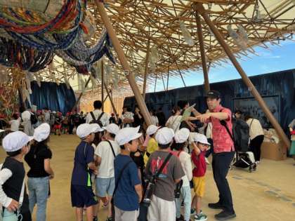 昼食後は「シグネチャーパビリオン・いのちめぐる冒険」「いのちの遊び場・クラゲ館」に立ち寄り、展示を見たり、ゲームをしたり。子どもたちは色々と発見や気づきがあったようです。