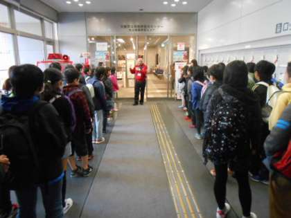 社会見学で5年生が、将来に発生すると言われている大地震に備えて、災害に遭った時の行動について学ぶために阿倍野防災センターを訪れました。映像や再現装置、再現現場で体験を通した学習をしました。
