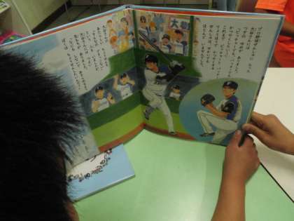 6時間目に、図書室へ行きました。メジャーリーガ—の大谷翔平選手の絵本「野球しようぜ」を読んでいる子のところに集まって何人かで楽しそうに見ていました。