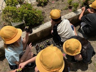 3年生は、ホウセンカとヒマワリを育てています。発芽した頃と比べると、随分成長しました。今日は、もっと大きく育つように、まびきをしました。今後の成長が楽しみですね。