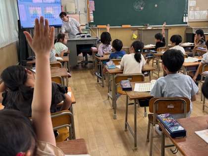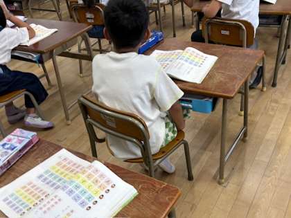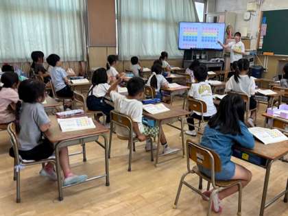 50音を大きな声で読みあげる学習です。口の動きに気を付けてはっきりと発音することを心掛けました。縦読み、横読み、みんな頑張っていました。