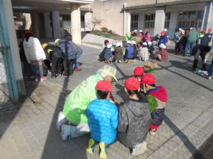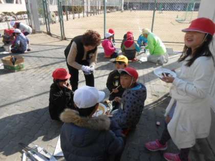 3年生が、社会科の「昔のくらし」についての学習をしました。地域の老人クラブの方に協力していただき、昔によく使われていた七輪で火を起こして、お餅を焼く体験学習をしました。