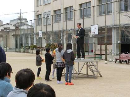 今朝の児童朝会では、大阪市読書感想画コンクールの奨励賞が届きましたので、受賞者を全校児童の前で表彰しました。児童には、関心あるものには、積極的に様々なコンクールに応募してほしいと思います。