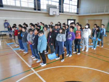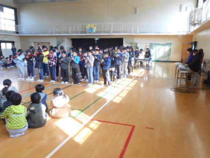 4年生、5年生が、この日のために練習に取り組んだ呼びかけと合奏を心を込めて贈りました。
