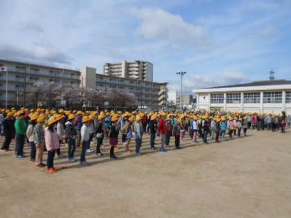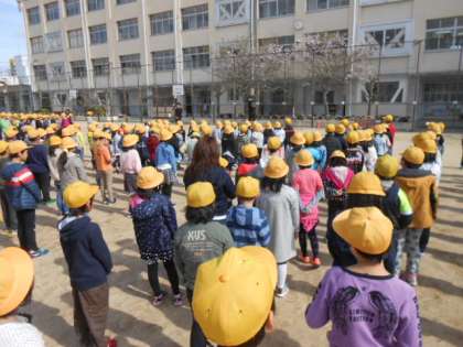 全校朝会では、「おはようございます。」の元気なあいさつの後、学校長の話があり、今月の生活目標につて担当教員から話がありました。