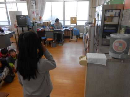 先週の発育測定に続いて、今週は、視力検査を実施します。目の健康についての指導を受けたあと、一人一人視力の測定をしていきます。目は一生使う、大切な器官です。日頃から目の健康に注意して過ごすようにしてください。