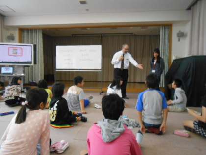 6年の英語活動は、身近に見かける英語をアルファベットを書いたり、エリック先生と発音や会話を楽しんだりしました。