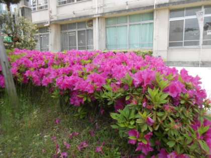 つつじの花が、満開に咲き誇っています。家の軒先やマンションなどでは、こいのぼりが気持ちよく、風に泳いでいます。